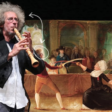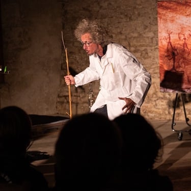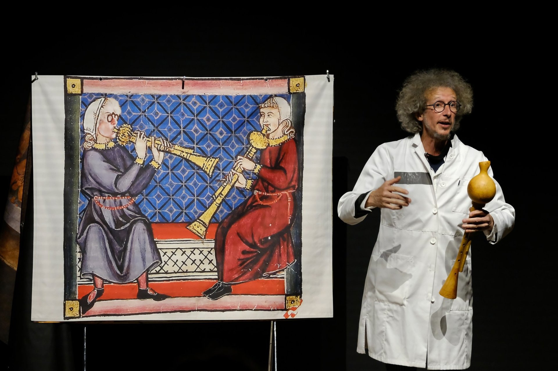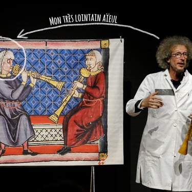 Pour appuyer cette thèse du CNRS, un drôle de professeur-musicien nous embarque dans une traversée délirante des siècles et des cultures, entouré de tableaux et de toute une famille d’instruments à vent...